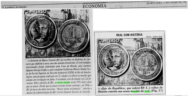 Segundo o Jornal do Brasil, do dia 14 de janeiro de 1998, a referida moeda aparece como uma das finalistas que serão votadas em pesquisa popular com resultado a ser divulgado no dia 02 de fevereiro do mesmo ano. Nos jornais da época, consta que foram recebidas cerca de 150 propostas para a nova família do Real e apenas as duas finalistas foram submetidas a votação popular. Porém, junto com as propostas finalistas, a própria Casa da Moeda elaborou uma terceira proposta e foi a que acabou sendo a escolhida na votação popular que abrangeu 3960 pessoas de todo o Brasil.