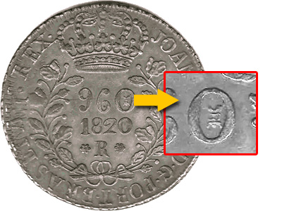 Embora seja raro encontrar siglas de gravadores em moedas cunhadas antes da Independência do Brasil, uma peça de 960 réis de 1820 se destaca por trazer uma marca curiosa: dentro do número "0" do valor, há uma discreta inscrição que, à primeira vista, lembra um "castelinho". Esse detalhe peculiar inspirou o apelido da moeda. Na verdade, trata-se de uma sigla estilizada com as iniciais JAE, referentes a José António de Emídio, gravador da Casa da Moeda do Rio de Janeiro durante o reinado de Dom João VI.