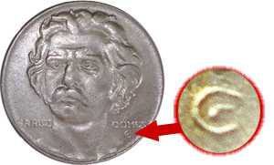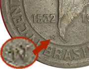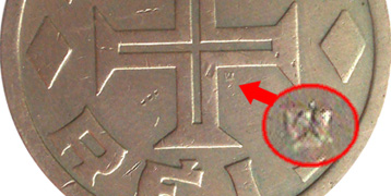 Na produção das moedas de 1901 — únicas a trazer a era em algarismos romanos (MCMI) — cunhadas fora do Brasil (Alemanha, Inglaterra, Áustria, França e Bélgica), aparece entre as estrelas uma discreta sigla PT, quase imperceptível, pertencente ao gravador francês Paulim Tasset.