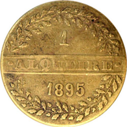 1 quarta (equivalente a 9,7 litros), essas moedas circularam de 1896 a 1916,