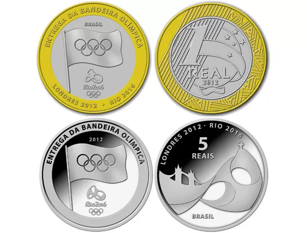 Com o objetivo de divulgar e registrar o evento, o Banco Central do Brasil lançou, em 11/08/2012, moedas comemorativas de circulação comum e de prata. As moedas, de R$ 1 e R$ 5, trazem as inscrições “Entrega da Bandeira Olímpica” e “Londres 2012-Rio 2016”.