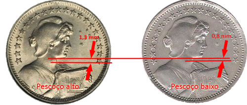 Existem dois tipos de cunhos, conhecidos como pescoço baixo (ou curto) e pescoço alto (ou comprido). A diferença entre eles está no comprimento do pescoço que se projeta para fora do manto, ou seja, na distância entre a base do queixo e o manto: no cunho de pescoço baixo, essa medida é de aproximadamente 0,8 mm; já no cunho de pescoço alto, cerca de 1,3 mm.
