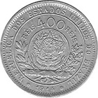 400 réis; cuproníquel; Ø 30 mm; peso 12 g; espessura 2 mm; borda lisa