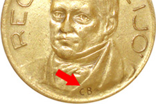 Segundo Hans Kochmann (SNB), "(...) a inscrição Z. FERREZ (Zeferino Ferrez, 1797-1851, gravador e abridor de cunhos da Casa da Moeda do Rio de Janeiro) em baixo relevo, é aposta na parte ovalada do corte do busto imperial (...)".